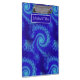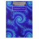 This beautiful clipboard features spiral fractal pattern in blue shades and customisable name in white on a rectangular frame. The back side is in matching blue shade.