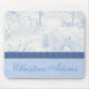 Traditional design in blue toile. Personalise with the text and font of your choice.