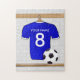 Personalised Blue White Football Soccer Jersey Jigsaw Puzzle