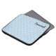 An elegant laptop cover with a pretty geometric tiled pattern of lines and curves, in white on a light blue background. Personalise with the recipient's name, in chic script typography, for a stylish individual gift.