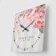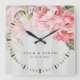 Personalised Blush Peony Wedding Gift for Couple Square Wall Clock
