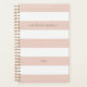 Chic personalised planner features wide blush pink and white stripes with your name or monogram in elegant off-black lettering. Personalise with the year along the bottom.