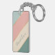 Personalised Blush Pink Mint Green Ivory Stripes Key Ring