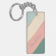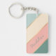 Durable rectangular key chain with trendy coral blush, light and dark mint, and ivory coloured stripes background to customise or personalise with a name, monogram or initial of your choice. Stylish, modern and cool customisable style for the fashionable woman. To attach to your purse or backpack zipper, to hold loyalty rewards or membership cards, or of course... to hold keys! What ever keys you want to stay in place and hold together, a unique personalised key ring will make it look nicer and also easier to recognise as your own set. Click on our store name to check out more unique key holders with other custom designs.