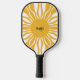 Boho 70's style abstract yellow gold sun and rays retro style pickle ball paddle, with retro flourished typography. A 60's and 70's style vibe. Add your name.