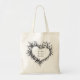 Boho chic personalised tote featuring a wild floral heart sketch. Artistic black and white botanical design. Customise this reusable bag with names. Perfect unique gift for bohemian weddings, bridal showers, bridesmaids, bachelorette favours, nature lovers, teachers, or stylish daily shopping.