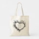 Boho chic personalised tote featuring a wild floral heart sketch. Artistic black and white botanical design. Customise this reusable bag with names. Perfect unique gift for bohemian weddings, bridal showers, bridesmaids, bachelorette favours, nature lovers, teachers, or stylish daily shopping.