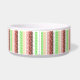 Personalised Cute whimsical boho dog dog bowl with pink, mauve, brown, burgundy and sage green polka dots and stripes pattern. Earthy warm colours.