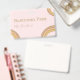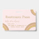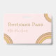 Cute personalised hall pass for students decorated with three boho chic modern neutral rainbows on a pink background. Customise the template with the title of the card and the teacher name. The template will update on both sides of the card. The back of the card has the room number and school name information in addition to the hall pass name and teacher name. Colours in this design are tan browns and pink. Add this hall pass to your elementary school or middle school classroom accessories. Design by Ms_Jade.