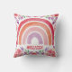 This personalised pillow features a beautiful watercolor rainbow in shades of pink, orange, and purple. The rainbow is surrounded by a floral border with delicate roses and leaves. Customised with your name, it’s perfect for brightening up any room, from a cosy nursery to a modern living space. This pillow also makes a heartfelt and unique gift for birthdays, housewarmings, or special occasions.