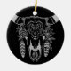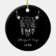 This holiday Christmas tree ornament features a Bohemian tribal skull decorated with flowers and feathers all done in shades of black and white. The back is personalised with a name, year or any text that you wish to add. *