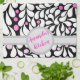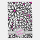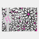 Flowers and swirling white petals against a bold black background. Original ' digital painting. Crisp edges, sharp lines and white dots and swirling petals. Pink colour fade ombre flower centres. Personalise the name.