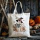 Our Halloween tote bag is not just adorable but also highly practical. It’s the ideal size for kids to comfortably carry all their collected candies and treats. With its spacious interior, this bag can hold a generous amount of goodies, making it a reliable companion for your child’s Halloween adventures. The sturdy canvas material ensures that it will last for many Halloweens to come.