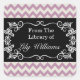 Personalise your books with the customisable bookplates with a trendy Purple chevron stripes pattern border and white floral frame on a black background.