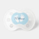 Personalised boy pacifier with baby footprints. Cute blue and white baby feet design with stylish script typography for name of child. Make your own soother for daughter, granddaughter, grandchild, infant etc Adorable baby shower gift idea for new baby / new mum / pregnant mother etc. Sweet pastel blue colour paci / binkie.