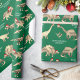 Personalised Boys’ Name Christmas Dinosaur merry christmas green Wrapping Paper. Cute Holiday Dino Gift Wrap