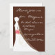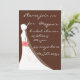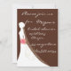 A simple brown background with the white silhouette of a bride. Personalise all of the words to suit what you want for the invite. Makes a great gift.