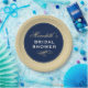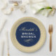 Elegant wedding bridal shower dessert plates feature the bride's name and "Bridal Shower" event title with a scroll detail and butterfly patterned border design. Midnight / navy blue with soft white / light ivory and champagne gold.