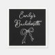 custom coquette doodle napkin favour, personalised trendy girly cocktail drink, customised pretty hand drawn look, bachelorette party bach weekend trip, hen do appetizer dessert serviette, girl girl's night in decoration, gift for her bridal shower, modern fun boho brunch decor, lunch tea miss to future, mrs luncheon be black white