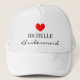 Personalised bridesmaid crew white trucker hats. Elegant wedding design with red heart and stylish script typography. Make your own caps for bride, bridesmaids, maid of honour, matron of honour, flower girls, mother of the bride etc. Cute love symbol. Classy look for wedding party, bridal shower, bachelorette etc. White or custom colours.