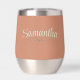 This beautiful Copper coloured tumbler has a script font for the word Bridesmaid in cream on the front with delicate watercolor wildflower sprig accent behind it. The Bridesmaid's name is on the back with Sagebrush accents below, adding a touch of Elegance to elevate that Rustic feel! Personalise with the easy to use template for your specific name. This design is also offered in a tall insulated Travel Tumbler at the Ivy Barn Studio. Both were designed to coordinate perfectly with my Rustic Boho Wildflowers Copper and Cream Wedding Suite Collection! This is unique and stylish and will be her "go-to" Wedding Cup to take with her when she goes shopping with you for your wedding dress, go out with all the girls, or getting together for any reason! *Don't forget to check out the rest of This Collection to get the ladies of the wedding party their version (perfect for the bridesmaid's gifts! ) to Celebrate in style together!! Great Mother of the Bride / Groom gift too!