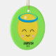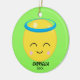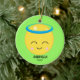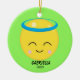 Join the emoji crazy! Personalise this ornament with your name or give as a gift. It has a bright lime green background with a smiling face and eyes closed with a halo emoji. Perfect for that angel in your life! Check out the many other emoji ornaments we offer in our store.