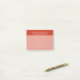 These custom post-it notes feature a background image of a field of colour: warm red (vermilion) with subtle changes in tone and value and a gritty grain texture to give it an organic feel. The lower 75% of the note is lightened for easier writing. Text fields are provided for your name, company/title, and contact information. Any of these can be edited or removed. The text use contrasting serif and sans serif fonts for a clean, professional look.