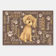 Brown Personalised throw pillow for your dog. Customisable with your dog's name. When you change the name Buddy to your own pet's name it will change all the typographical names at the same time. Word cloud art typography. Different font type and styles in brown and beige paw prints that looks great with a rustic barn style home. Trendy and modern design. Everything is customisable. You can change the brown background colour, change the font style and size and colour. The cute brown puppy dog is fluffy/wavy with a sort of beard and looks like a Goldendoodle, Groodle, Labradoodle, Retriever, Terrier, Poodle. Cockapoo, Cavapoo, Maltipoo, Havanese, Schnoodle, Shih Tzu, Lhasa Apso, Yorkshire Terrier, Sheepdog, Schnauzer, Bearded Collie, and many more.