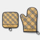 Personalised Brown White Black Plaid Pattern Oven Mitt & Pot Holder Set