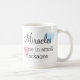 Sip on your daily morning hot beverage while smiling with this personalised NICU nurse coffee mug. Features an adorable brunette nurse holding a baby and accented with pink and blue hearts. The other side reads 'Miracles come in small packages'. Personalise the mug to any name. Coffee or tea has never tasted better than in this amazingly adorable and fun mug.