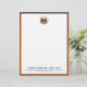 Elevate your professional image with this personalised luxury monogram letterhead. The design features a brushed gold medallion initial at the top, with your name and contact information in classic block typography on a clean white background, trimmed in sable brown leather print. Perfect for adding a touch of sophistication to your correspondence.
