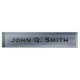Simple, elegant brushed metal look desk sign. This digital artwork shows a realistic sheen of a deep grey stainless steel. Personalise it with your name!