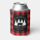 Personalised Buffalo Plaid Bear Forest Cabin Can Cooler