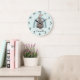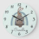 Personalised Bunny Rainbow Blue Nursery Large Cloc Clock