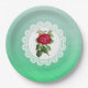 Personalised Lime Green Burgundy Vintage Rose Paper Plates for floral themed baby showers, weddings or birthdays.