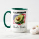 Keep it fresh and West Coast proud with this playful California Combo Mug featuring "California" across the top, set against a waving United States flag. In the forefront, a perfectly cut avocado—seed and all—pays tasty tribute to the Golden State’s most famous green gem. It’s a sunny slice of California culture, blending laid-back vibes, healthy living, and a little foodie flair. Perfect for avocado lovers, brunch enthusiasts, and anyone who believes life’s better with a little guac on the side. Customisable for your city, zip code, neighbourhood, or even your name! Design can be moved or duplicated to the opposite side. Popular shows and movies dedicated to California include Fast Times at Ridgemont High, Entourage, Point Break, The O.C., Beverly Hills 90210 and Gidget.