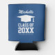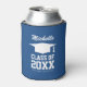 Graduate party bottle and can coolers with graduation hat / cap. Custom class of 2024 etc. Personalised text and background colours. Create your own party favour. Cosy gift idea for high school graduate students, college, nursing school, university etc. Script typography for name or monogram. Keeps drinks cool. Beverage holder with double sided print. Customisable background colour. Also nice for school reunion parties.