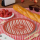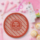 Personalise with your greeting and name! This festive red and white candy cane stripe design with holly branch border will brighten up your holiday party and make cleanup a breeze!