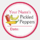 These personalised round canning stickers will fit on top of your glass jam, jelly, and preserves jar lids. They have an image of a three chilli peppers.