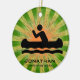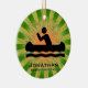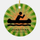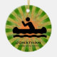 Canoeing Personalised Ornament Christmas 20XX. A canoer against a green and orange starburst background. All text customisable, front and back!