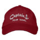 A dynamic personalised Captain cap in nautical red and white style embroidered hat sure to make an impression on, or off the boat. Make this lifesaver anchor design embroidery as unique as you are with your name, your location, or your boat's name.
