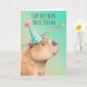 Send birthday wishes with a splash of quirky charm! This Personalised Capybara Birthday Card features the internet’s favourite chill creature in a festive mood—perfect for animal lovers, meme fans, or anyone who appreciates a laid-back celebration. Whether your capybara is wearing a party hat, soaking in a tub, or just being adorably mellow, this card adds a playful twist to any birthday. Customise with the recipient’s name and message inside to make it truly one-of-a-kind. It’s the ultimate way to say “Happy Birthday!” with personality and pawsitivity!