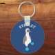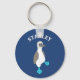 Create a cute keychain that's perfect for bird lovers. This personalised keychain features a cartoon style illustration of a blue-footed booby bird against a blue background and is ready to be personalised with a name or other text in white lettering.