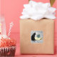 Personalised Cat and Books Bookplate Sticker against a light grey watercolor background, with customisable text.