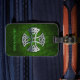 A bold chrome silver Celtic cross on a gorgeous background make this a striking luggage tag.