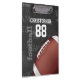 A modern American football grid iron design featuring a football on a chalkboard typography background with football terminology in the background. The design features customisable text for the name and number of the football player or grid iron fan. This design has been made in part with graphics licensed by Graphics Factory.