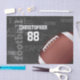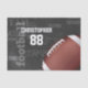 A modern American football grid iron design featuring a football on a chalkboard typography background with football terminology in the background. The design features customisable text for the name and number of the football player or grid iron fan. This design has been made in part with graphics licensed by Graphics Factory.