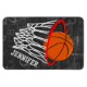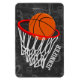 Personalised basketball and hoop design on a dark and light grey chalkboard design background with a pattern of basketball terms. Just customise the name to add the name of the basktball fan, basketball player or basketball coach. Ideal for netball players too!