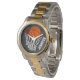 Very good quality watch that looks good whether dressing up or down. The band is sturdy. The watch is rather large so might not work for smaller folks. Recommended as a good gift. Printing is just a touch light but adds a nice touch of personalization.