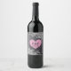 Black chalkboard and pink heart with fancy white tribal borders, initials and wedding date wine bottle label.